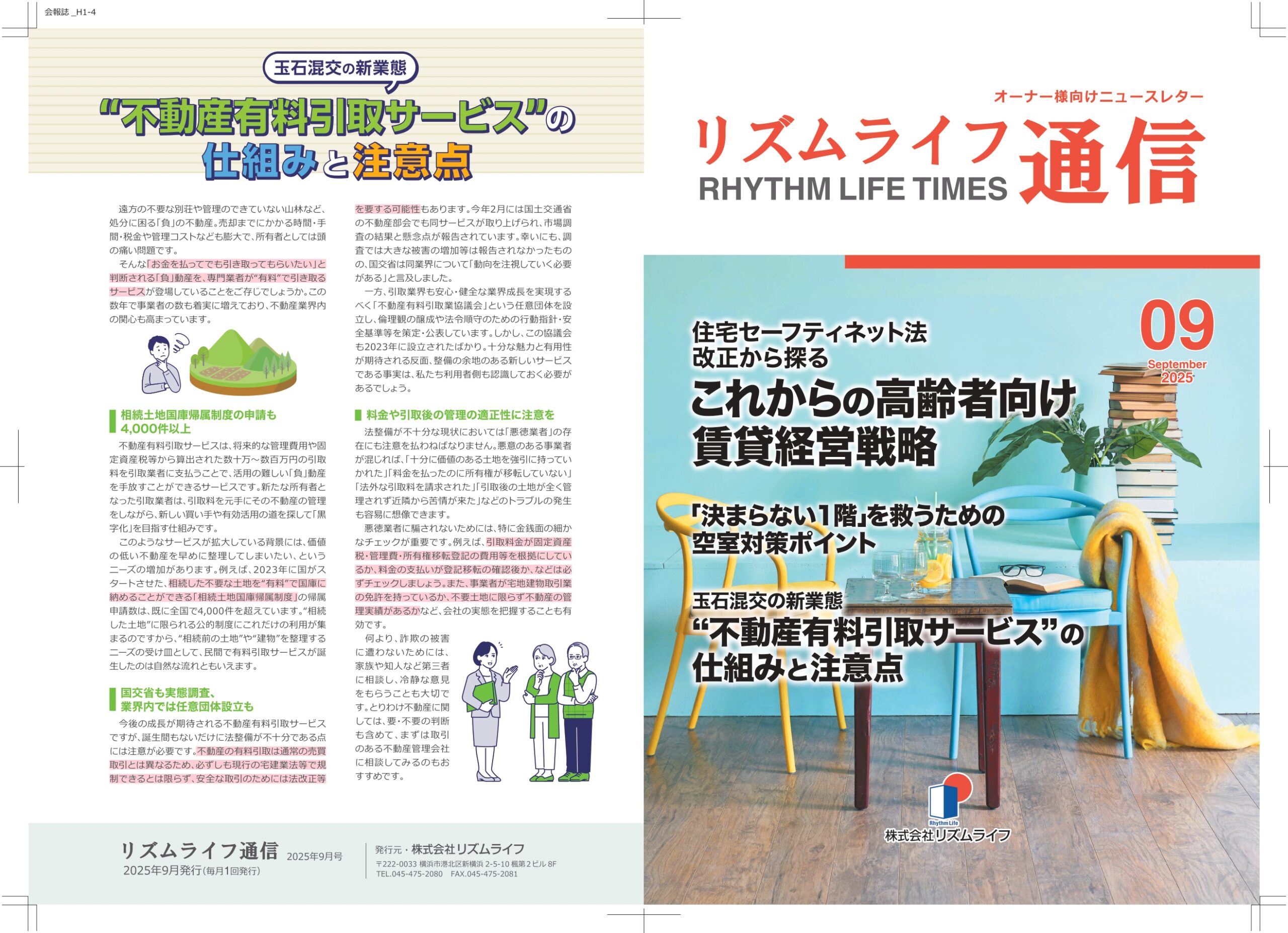 リズムライフ通信 2025/09 ブログ 関連一覧 リズムライフ通信 2025/10 2025.10.01 リズムライフ通信 2025/02 2025.02.07 (公財)日管協預り金保証制度に加入いたしました。 2025.04.01 リズムライフ通信 2025/05 2025.05.08 事務所改装のお知らせ 2025.02.01 夏季休業のお知らせ 2024.07.08